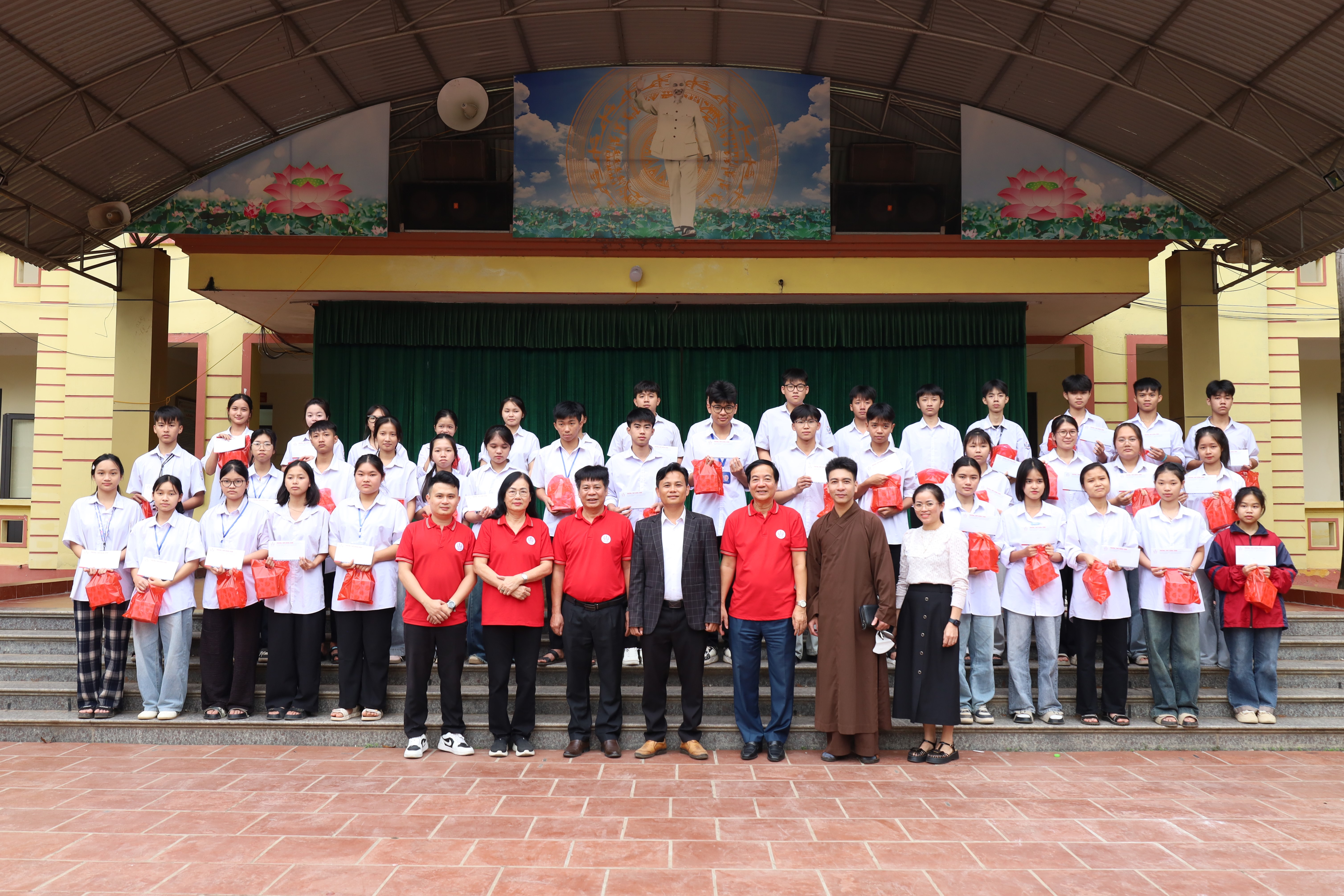Trong hành trình này, đoàn đã trao tận tay những suất quà đến các em học sinh có hoàn cảnh thiếu thốn, đồng thời gửi lời động viên, sẻ chia tới những gia đình đang nỗ lực vươn lên trong cuộc sống. Đặc biệt, thầy Nguyễn Đình Thịnh - nguyên giáo viên Trường THPT Đông Kinh - cùng các quý Phật tử cũng đã đồng hành và trực tiếp gửi quà, thăm hỏi các hộ dân, góp phần lan tỏa thêm tinh thần nhân ái và yêu thương.