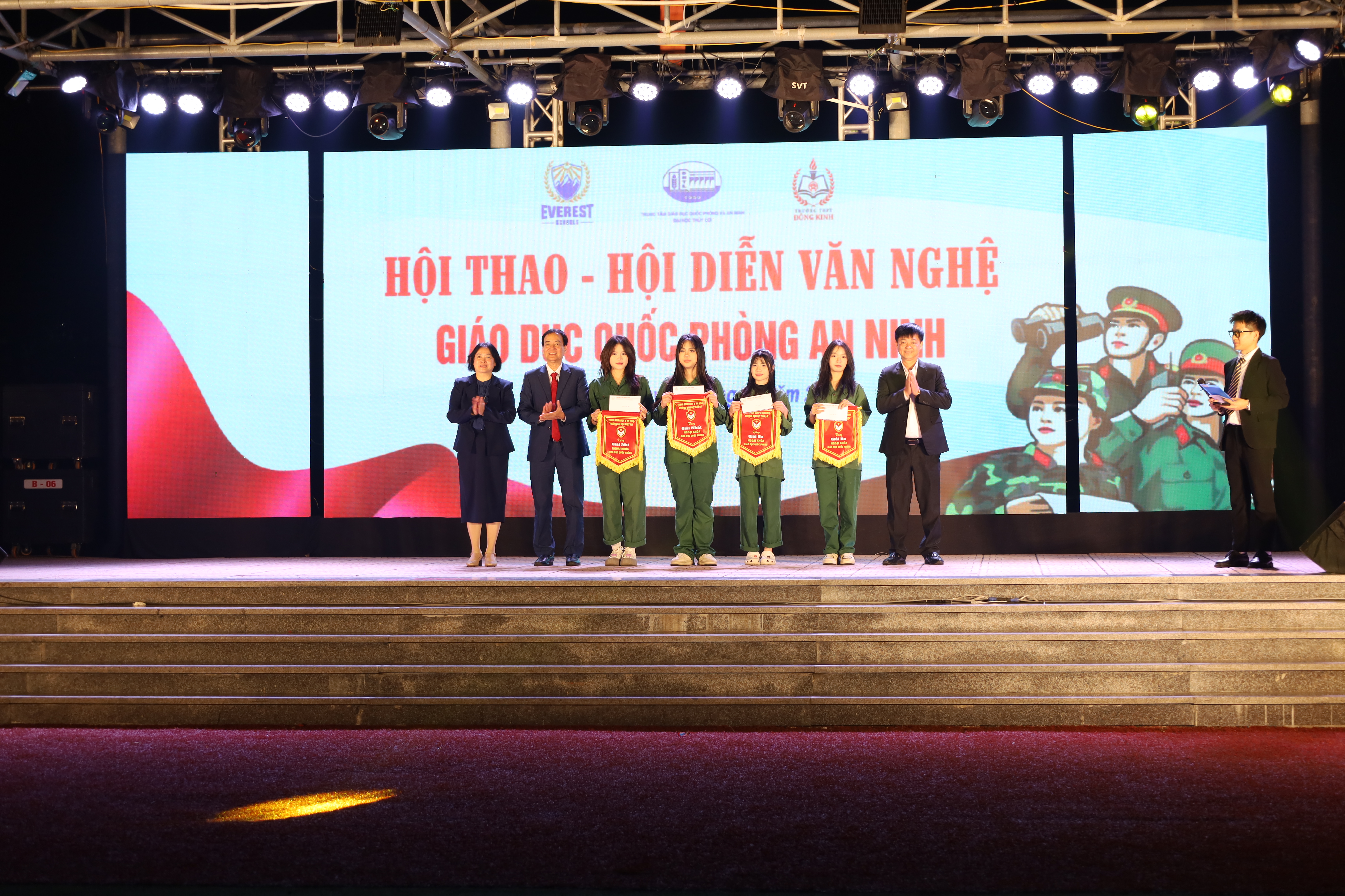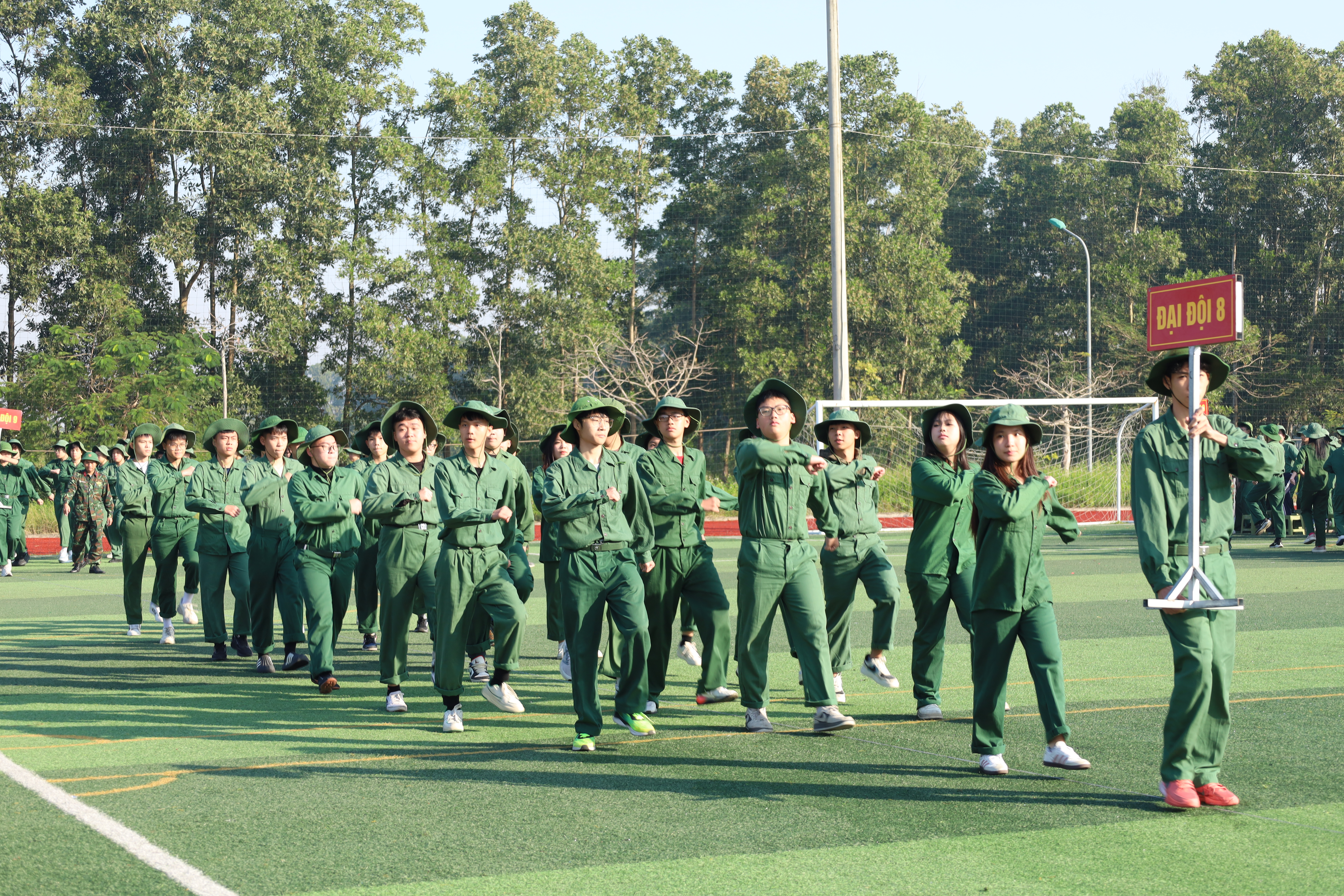 Điểm nhấn của chương trình là hội thao GDQP&AN, nơi học sinh Đông Kinh thể hiện rõ bản lĩnh qua các nội dung duyệt đội ngũ, đồng diễn thể dục và thi nội vụ. Sự nghiêm túc, đồng đều và tinh thần đoàn kết đã tạo nên hình ảnh đẹp của những “chiến sĩ học đường”.